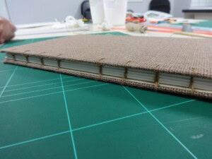 It was decided to make them half leathered, of maroon color and with a Bomoart flowers paper. I was able to fix the fold of the spine and the headcap.