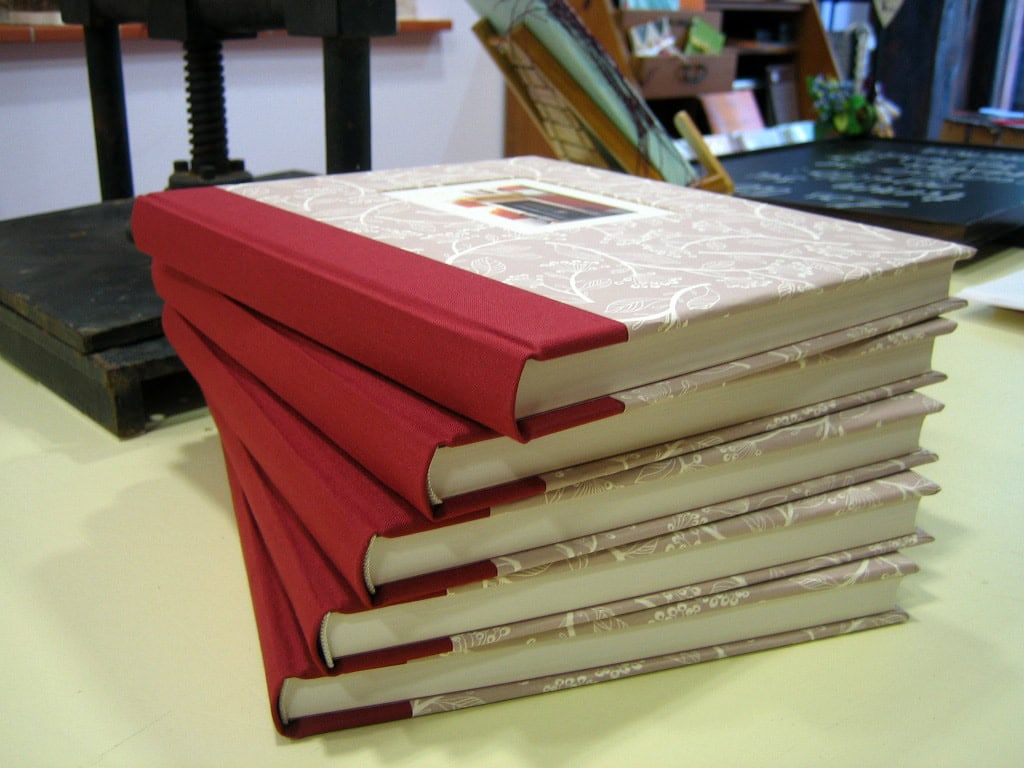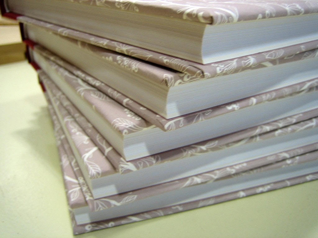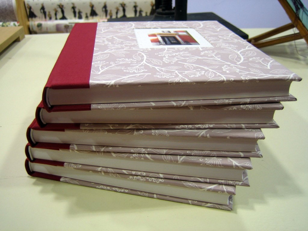 Este encargo consistía en encuadernar 5 ejemplares de la historia de su familia redactada por el cliente. Se trataba de hojas sueltas (no cuadernillos) por lo que se cosieron a “diente de perro” y se encuadernaron con “tapa suelta” como se aprecia en la fotos, con el lomo ligeramente redondeado.