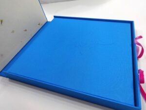 Este es un encargo que me hizo un diseñador. Me pasó el dibujo por email y con las medidas confeccioné el libro, lo encolé (páginas y todo) y lo llevé al carpintero para que lo serrara. Luego vino el trabajo de encolarlos de nuevo y terminar los acabados.