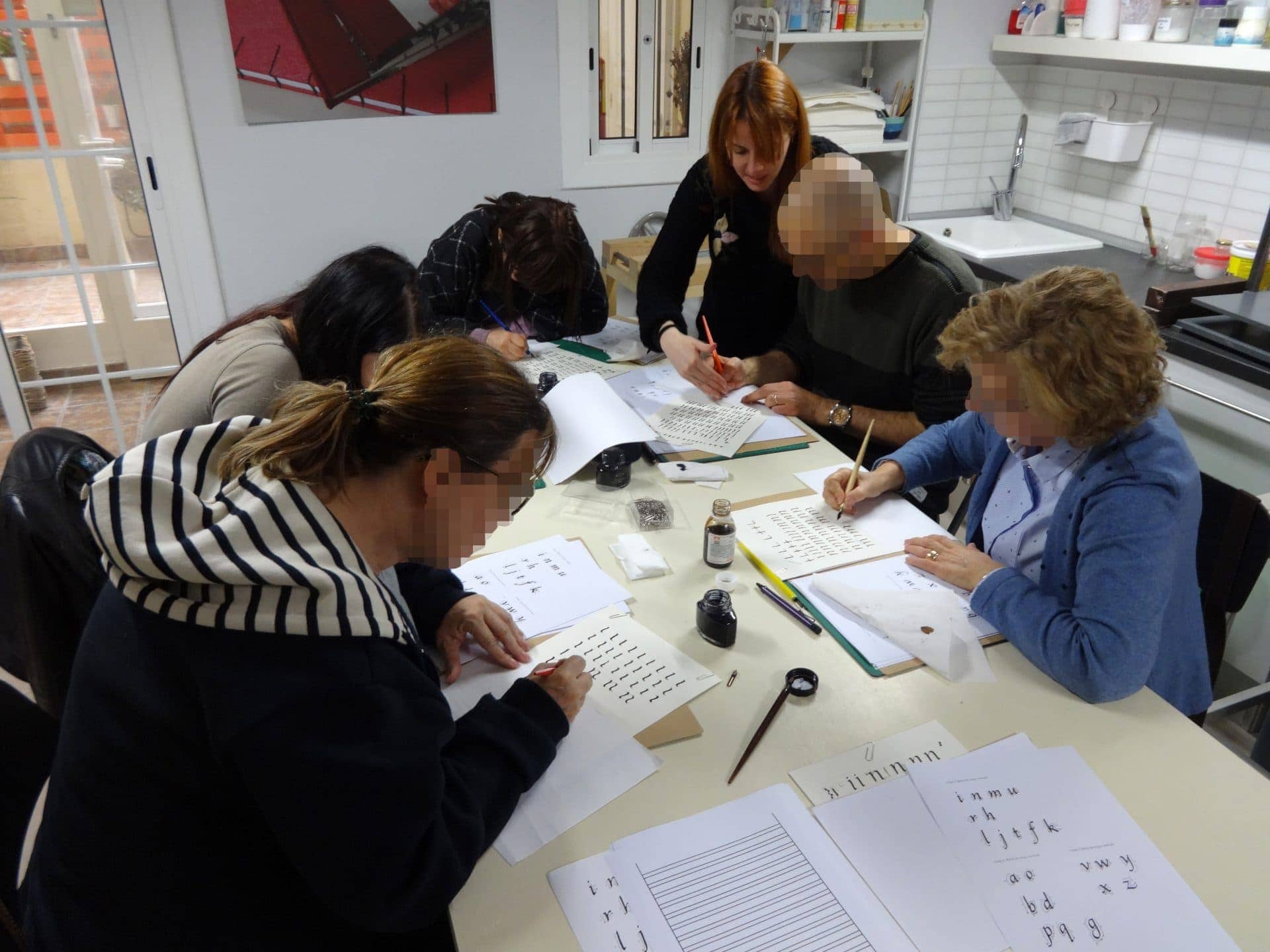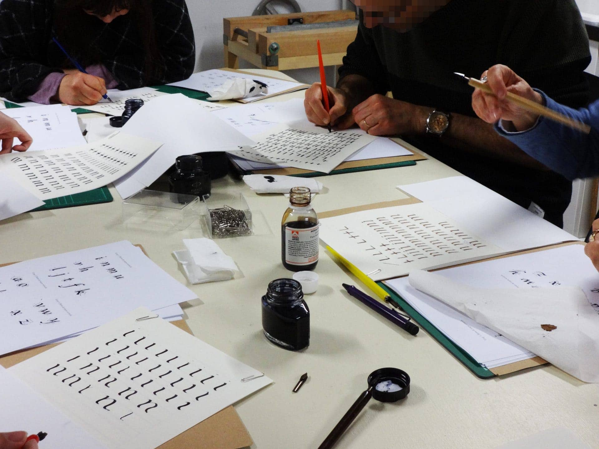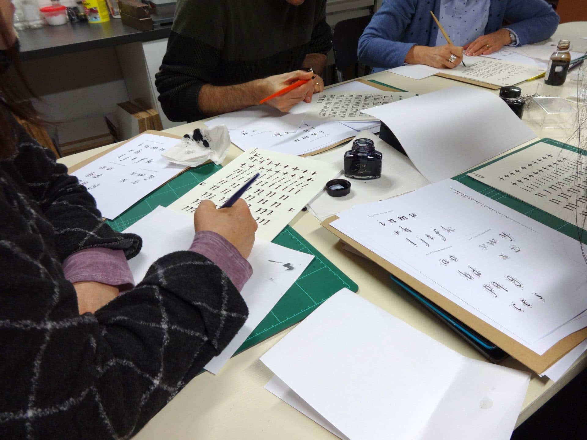 En este taller aprendimos a hacer todo el alfabeto en este tipo de letra utilizando plumilla, tinta y papel.